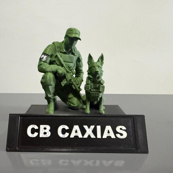 Adicione um visual tático e militar ao ambiente com esta placa decorativa inspirada no Canil do Exército, representando um militar em posição estratégica ao lado de um cão K9, símbolo de disciplina, lealdade e operações especiais.