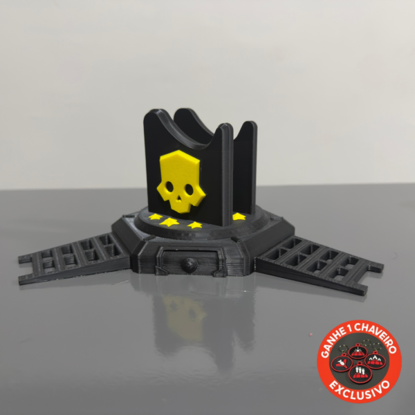 Com design inspirado no universo de Helldivers 2, é perfeito para decorar setups gamers, mesas, estantes ou compor coleções temáticas, trazendo personalidade e estilo ao ambiente.